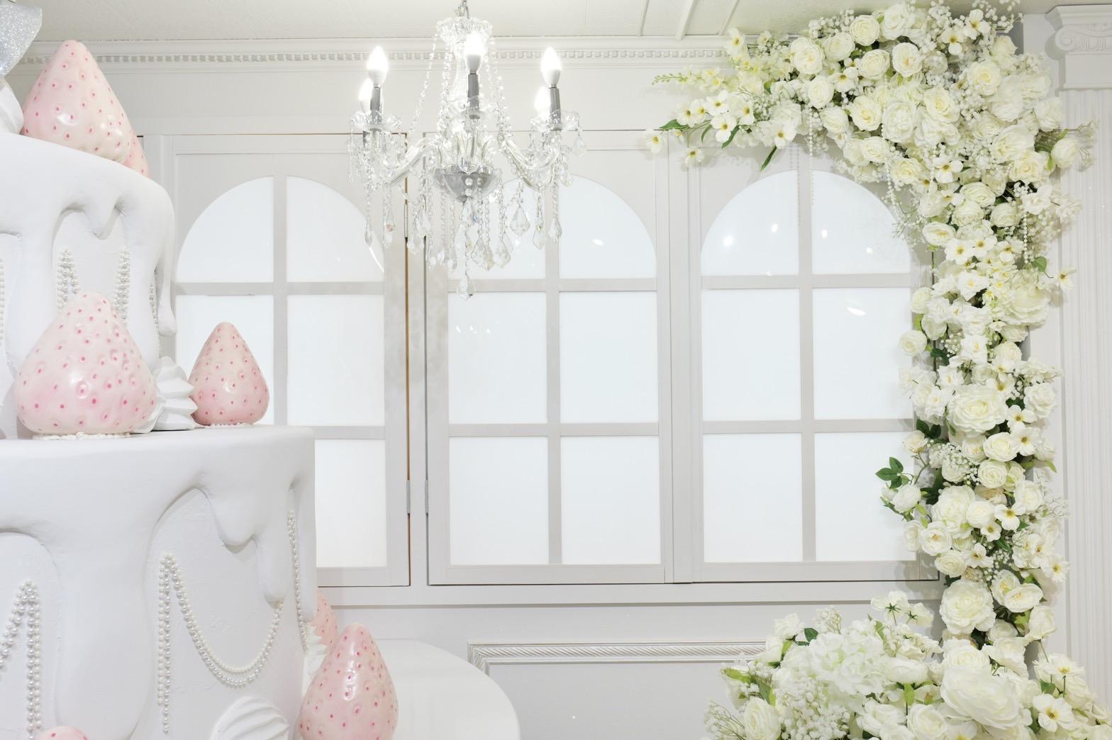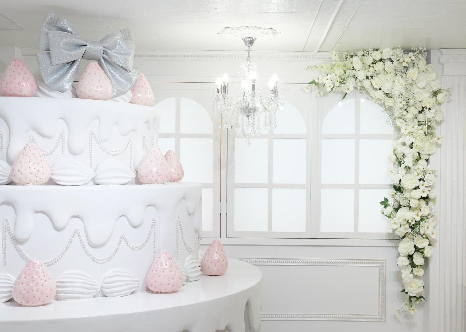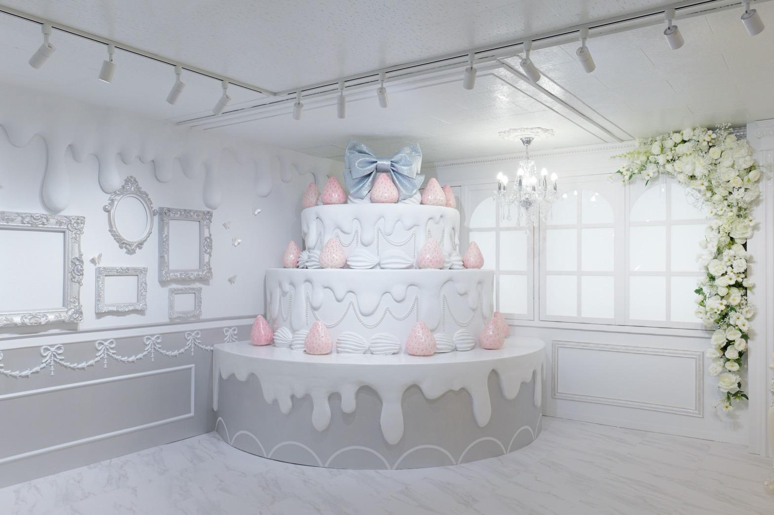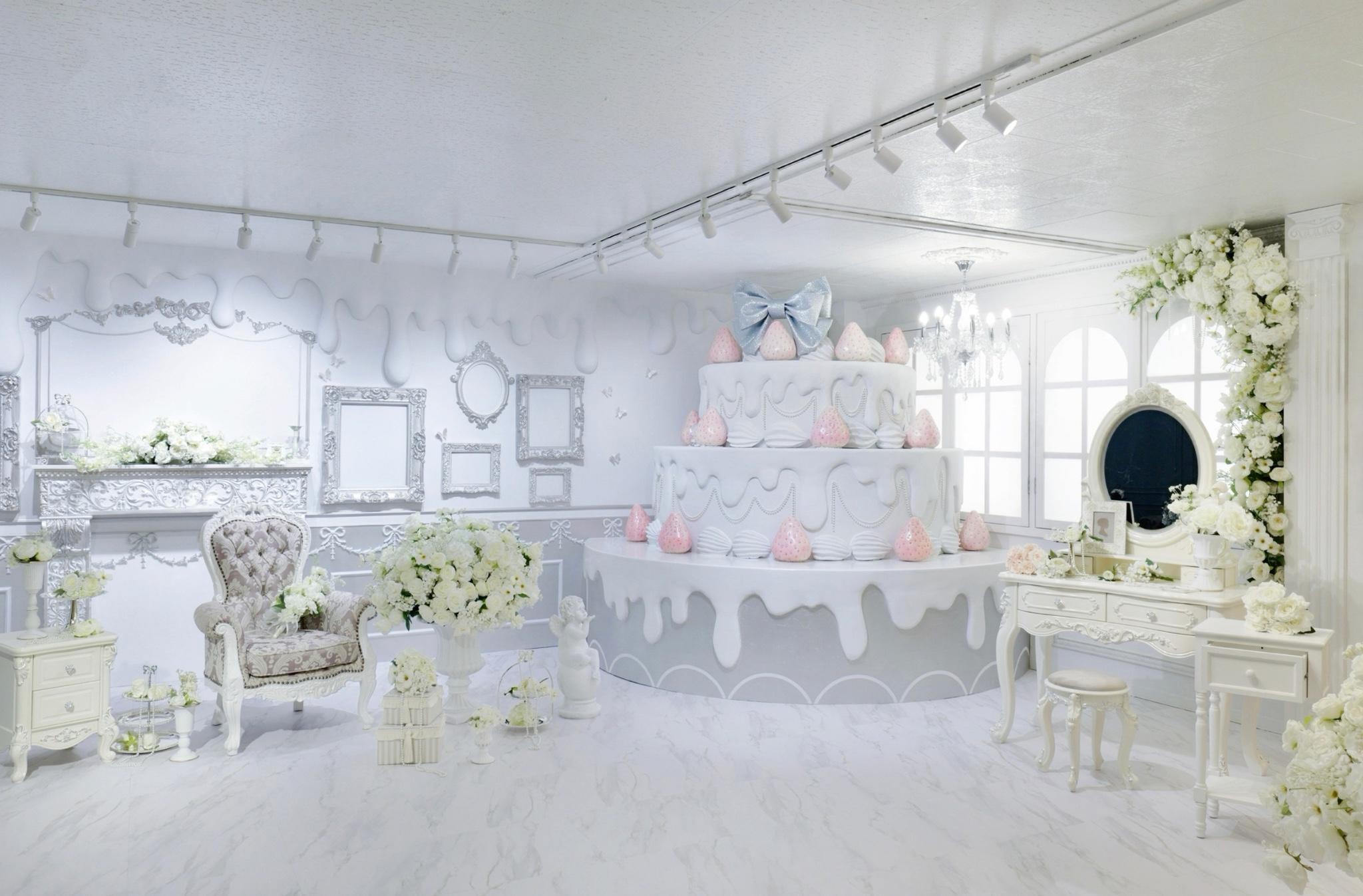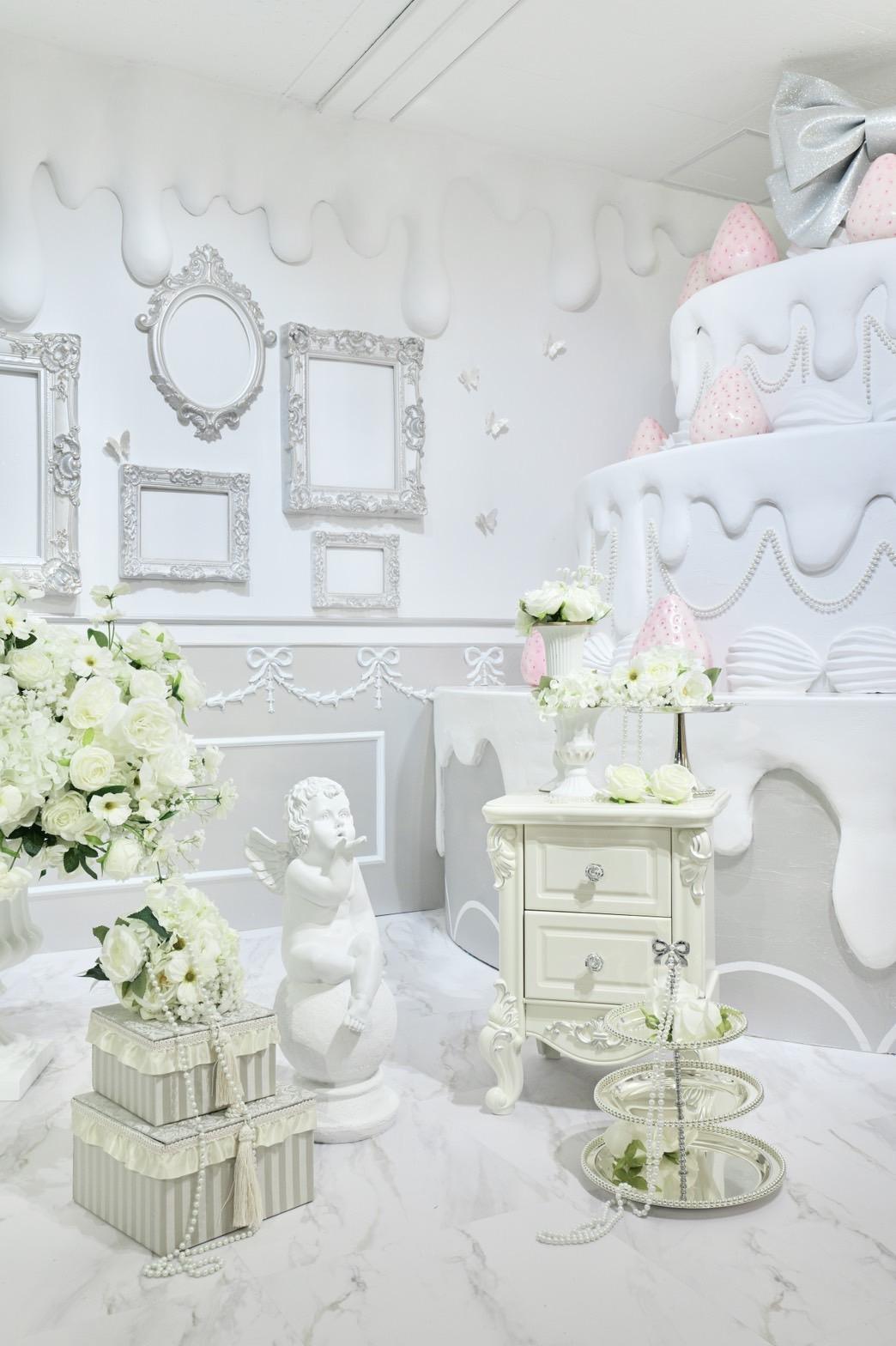 巨大ケーキをメインとしたホワイト×シルバーの背景を活かして世界観を自由にカスタマイズ♡