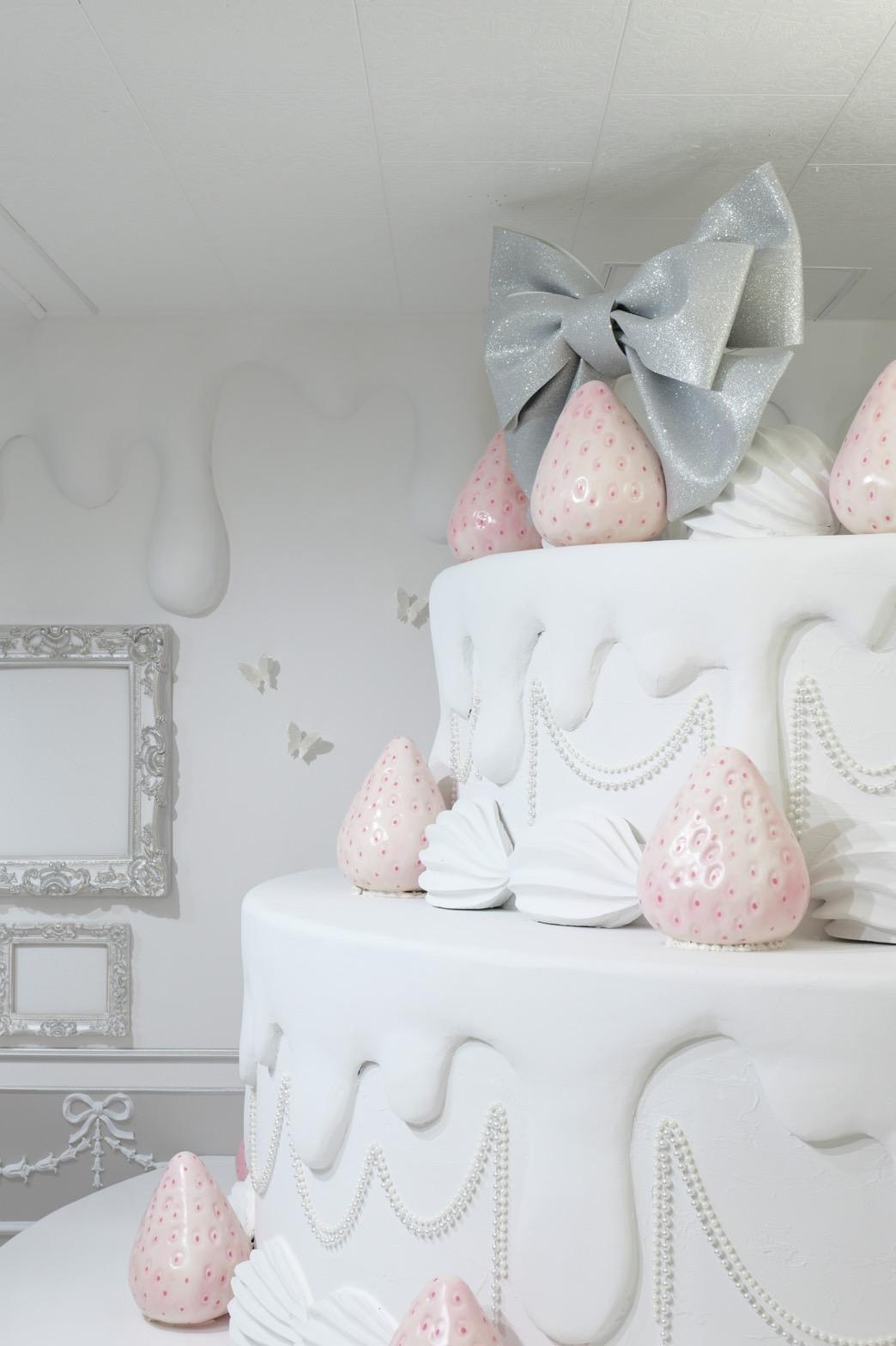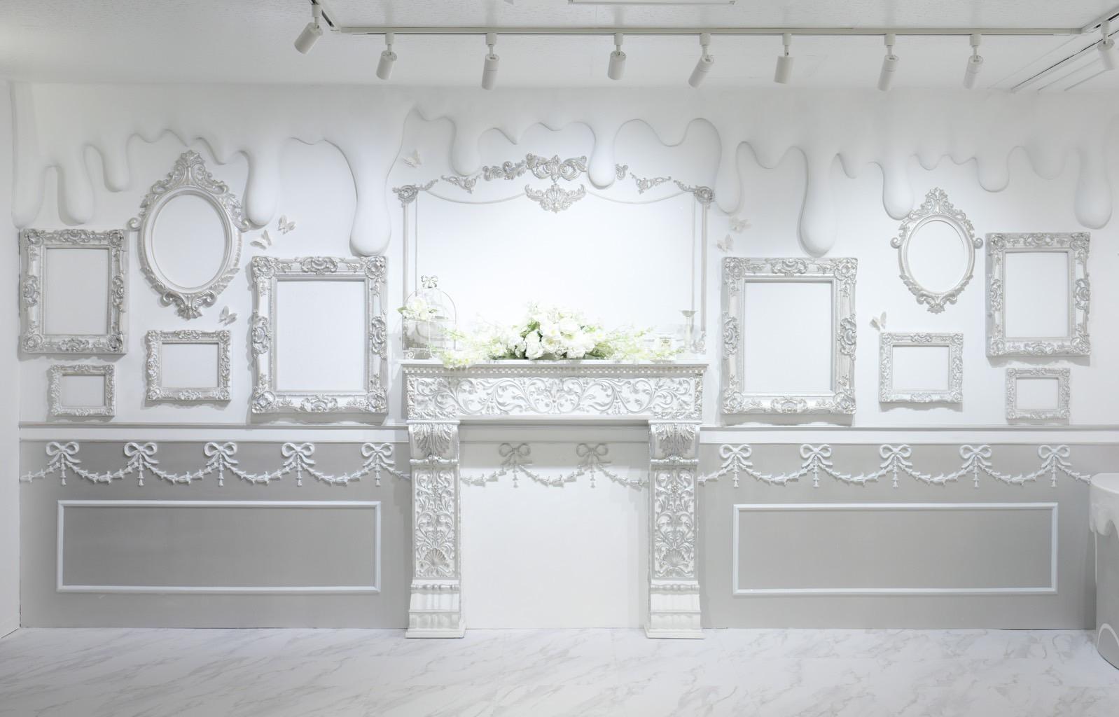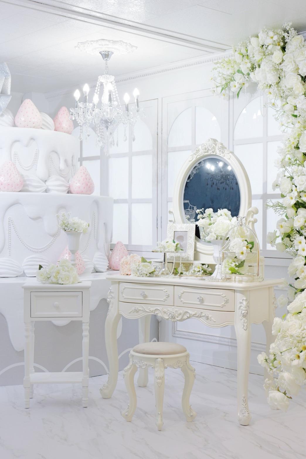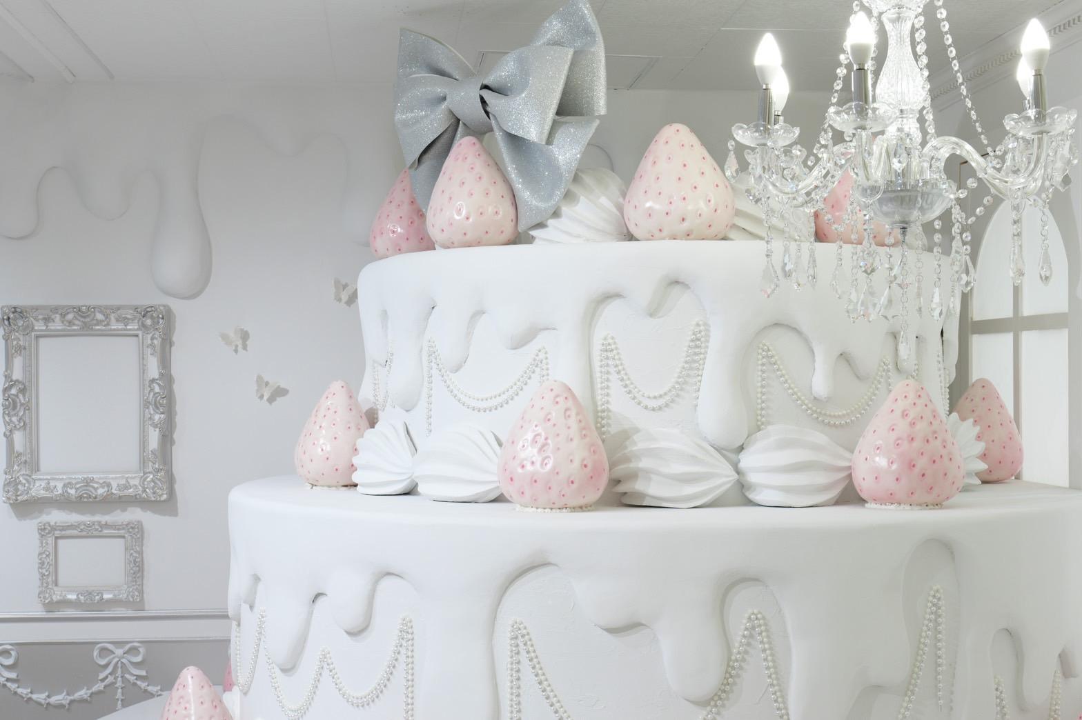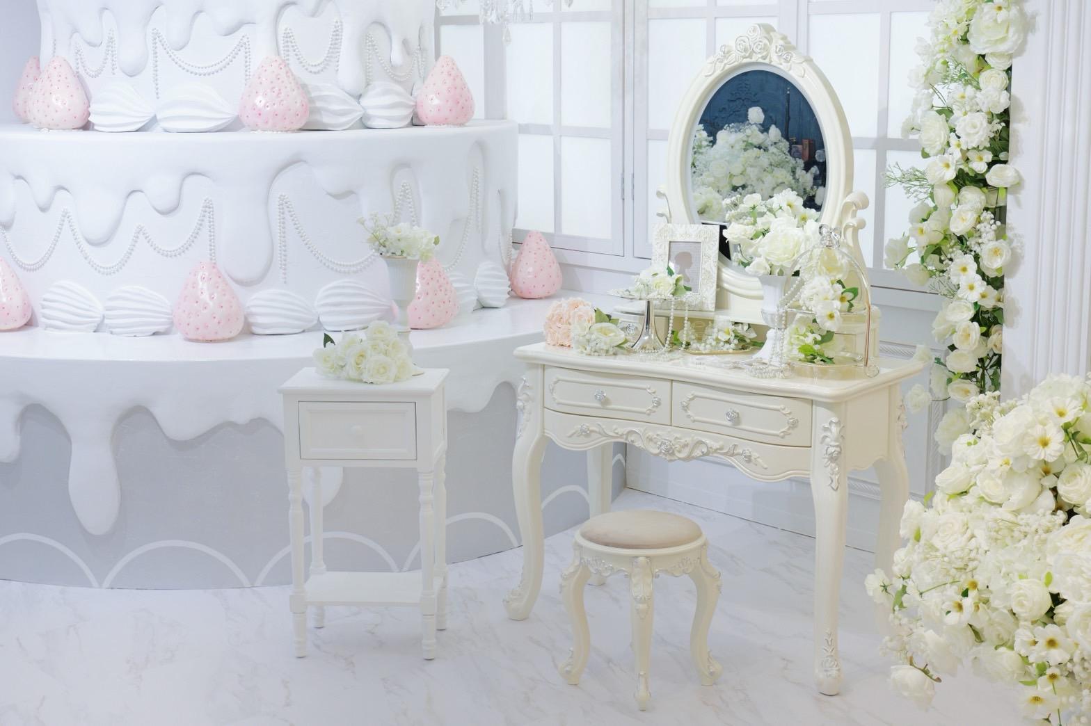 巨大ケーキをメインとしたホワイト×シルバーの背景を活かして世界観を自由にカスタマイズ♡