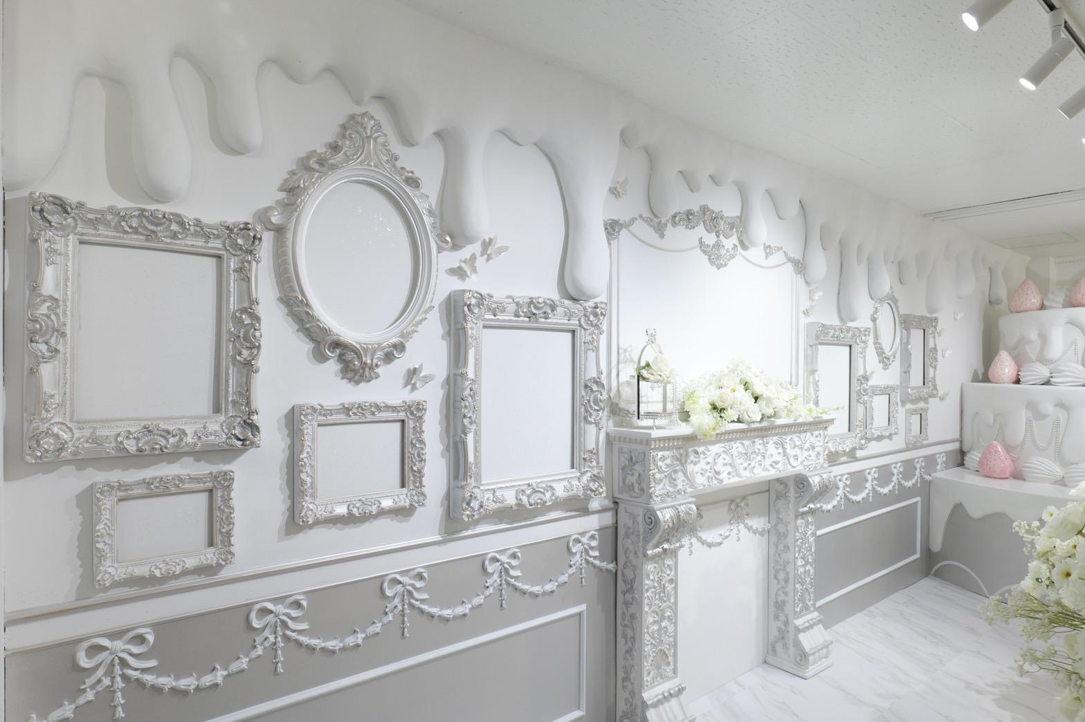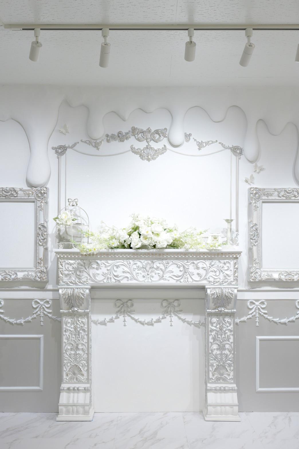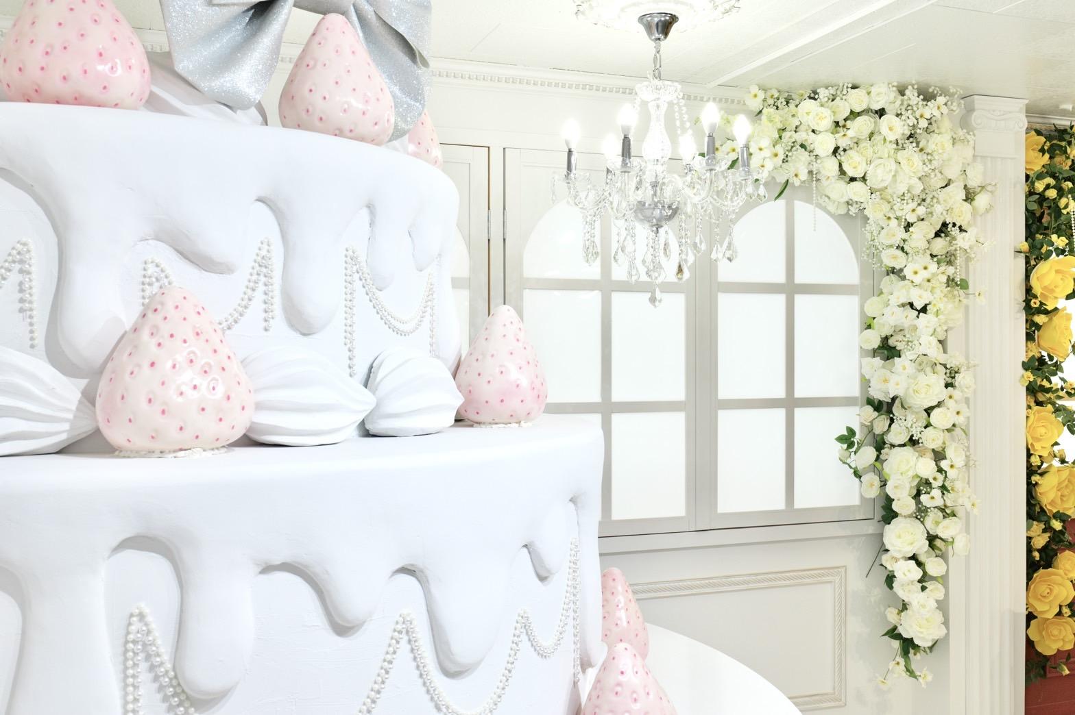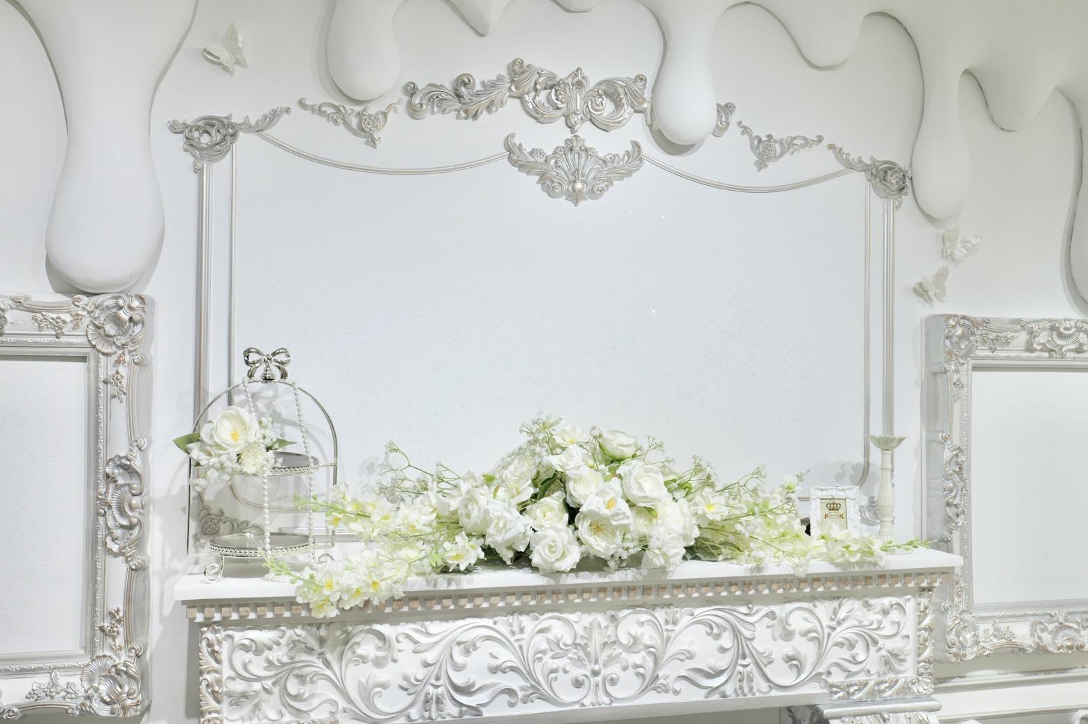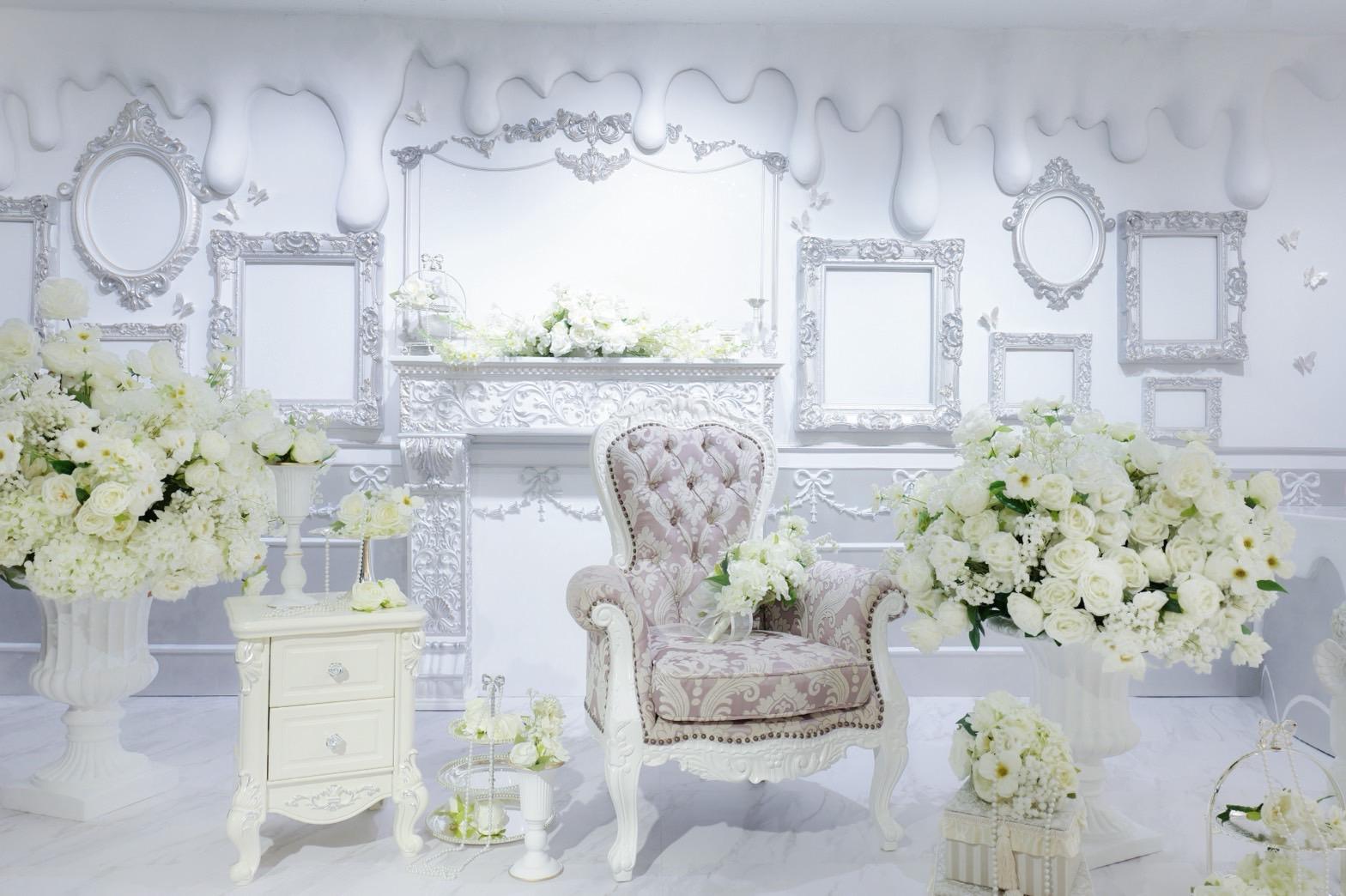 巨大ケーキをメインとしたホワイト×シルバーの背景を活かして世界観を自由にカスタマイズ♡