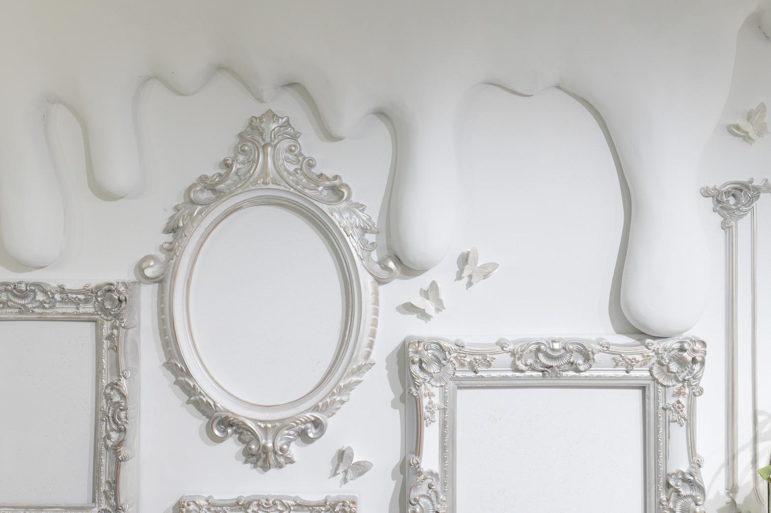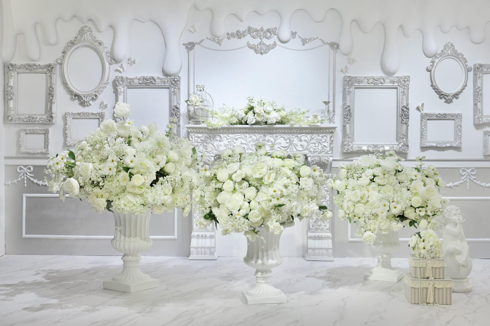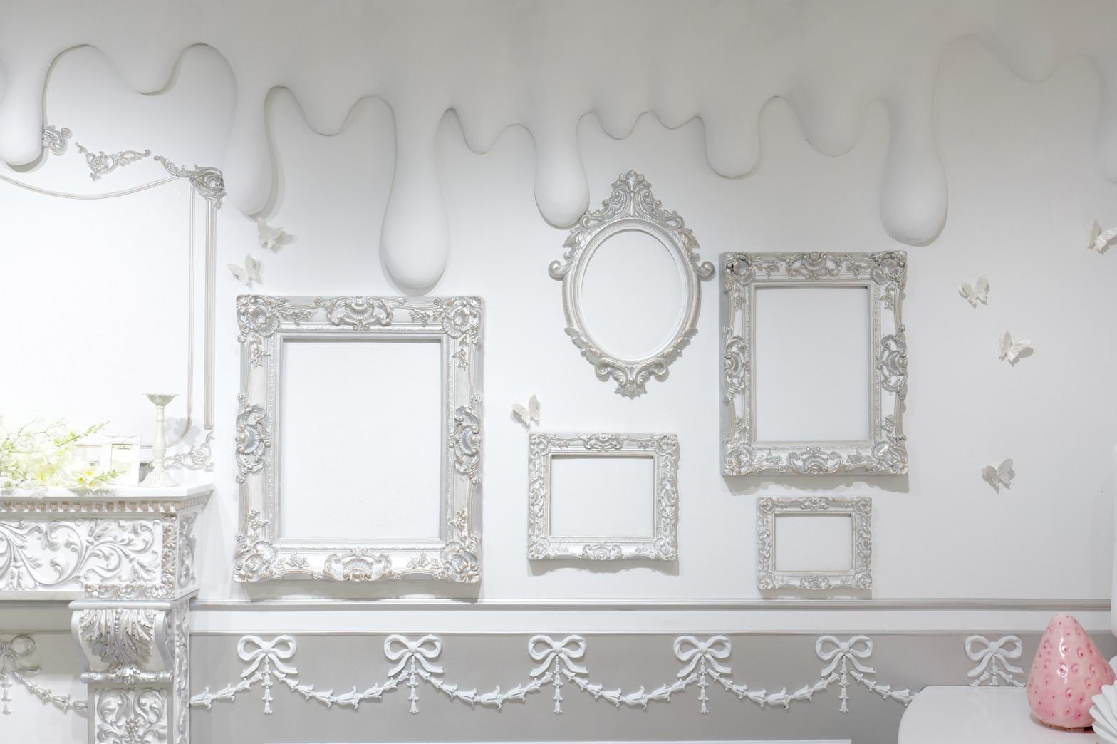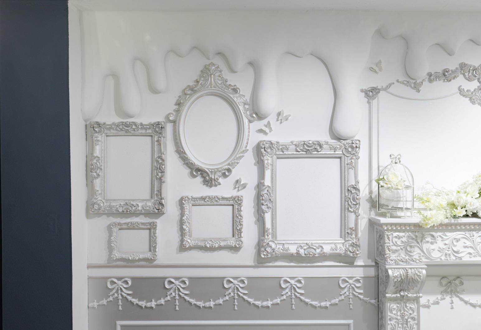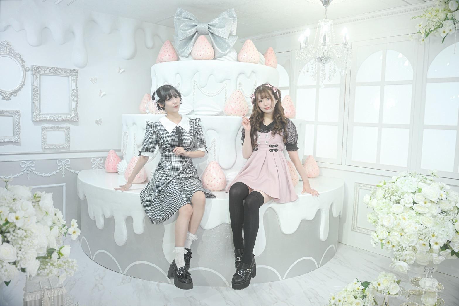 巨大ケーキをメインとしたホワイト×シルバーの背景を活かして世界観を自由にカスタマイズ♡