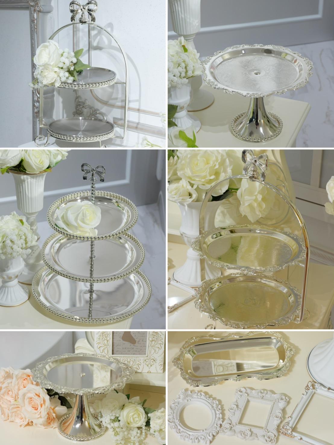 ホワイト×シルバーの世界にそびえる3段ホイップケーキが主役の