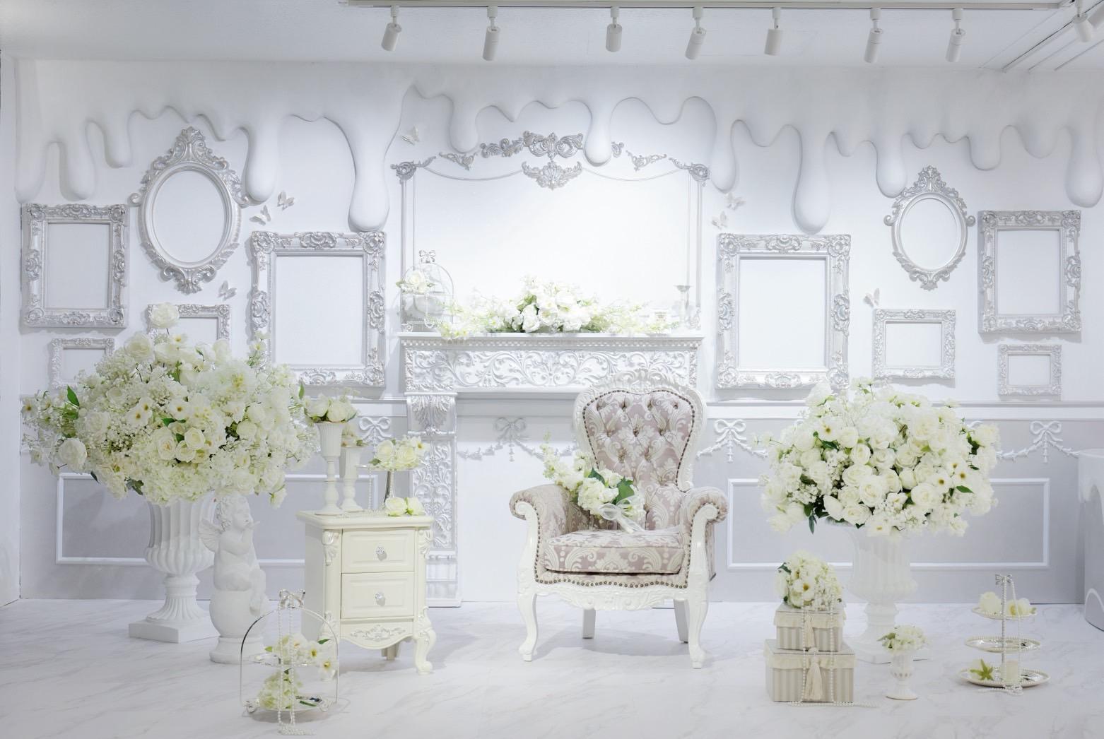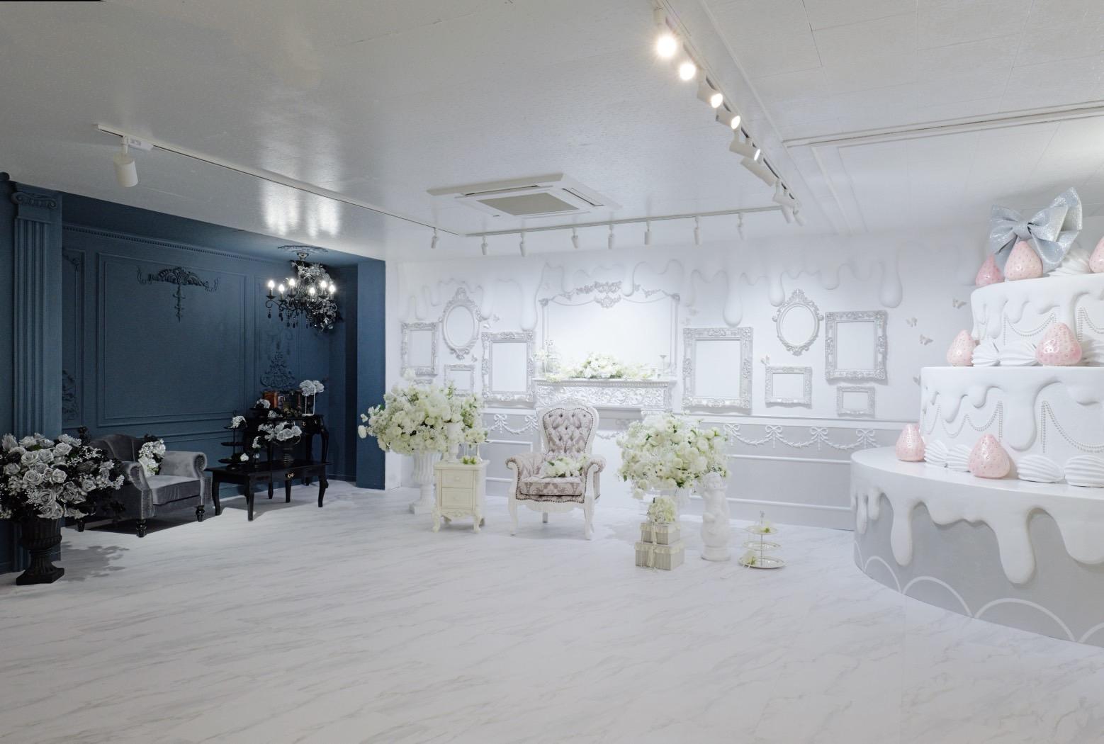 当店は広さ約67㎡あるから他社のいわゆるレンタルスペースとは違って、広々としたら撮影スタジオになります♡ホワイト×シルバーケーキブースだけじゃない!!