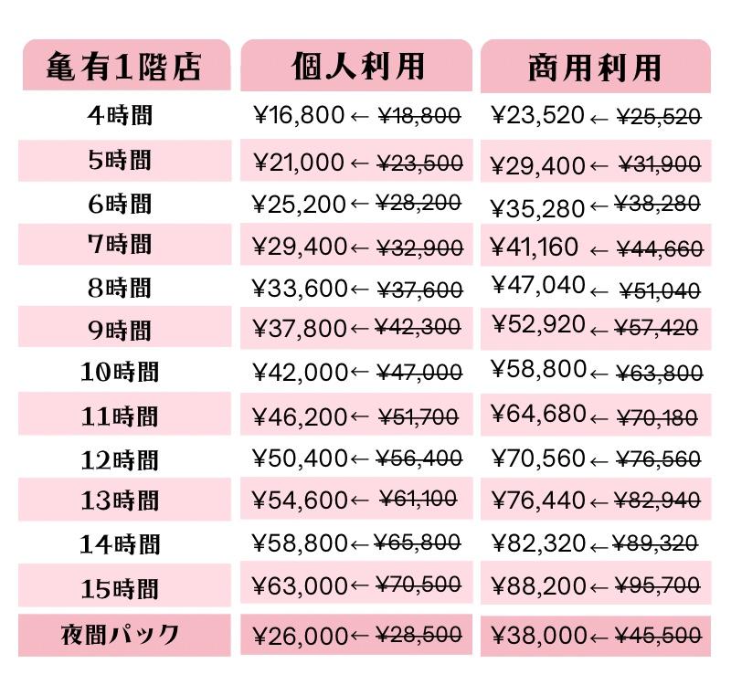 個人利用にてご予約頂いていたにも関わらず商用利用の撮影を行っていた場合には、違約金として倍額を追加で頂戴することになりますので、予めご了承ください。